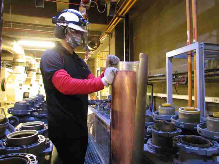PA直营将废弃物转化成有效的工业或民生原物料,,,,图为废铜液淬炼后再制成纯度极高的铜管