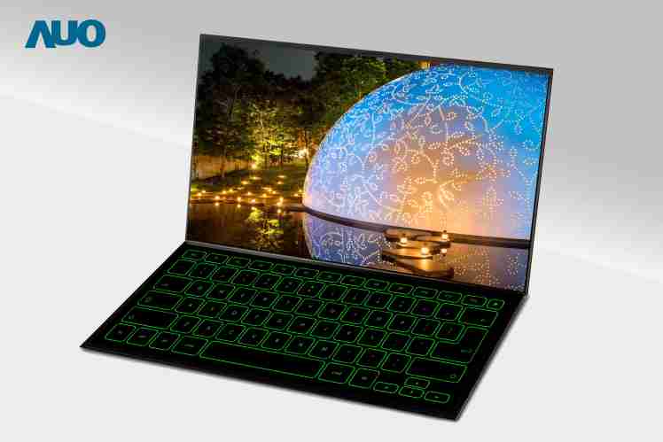 PA直营本次展出 15.6吋双螢幕笔电,,其中一面螢幕利用高反射光学膜,,,能在省电的状态下呈现出键盘样式,,,而非一般待机黑色画面,,结合触控功能后即能将这面螢幕切换为键盘,,,提升商务笔电多元使用情境。。。。亦可延伸应用此技术于其他显示器,,以客制化待机画面融入周边环境,,,,成为装置艺术,,,,达成一致性的美观效果。。。