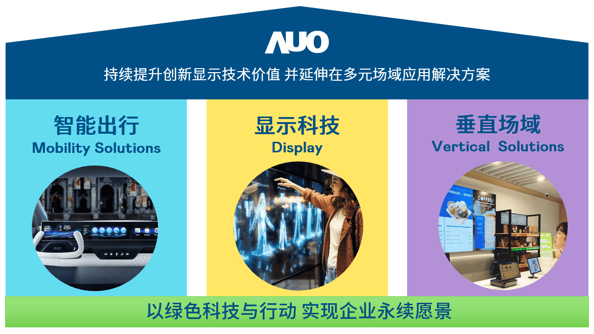 我们持续推动「双轴转型」,,在精进显示技术附加价值(Go Premium),,与深化垂直市场应用(Go Vertical)的策略下,,对应PA直营的优势竞争力与趋势,,,,我们奠定显示科技、、、智慧移动、、、垂直场域三大永续营运支柱,,在显示技术领域的根基之上,,,,延伸布局多元场域应用解决方案。。。将先进显示科技助力智慧移动及垂直场域发展,,,并以绿色科技与行动为实践,,,在转型之路上贯彻永续经营之愿景。。