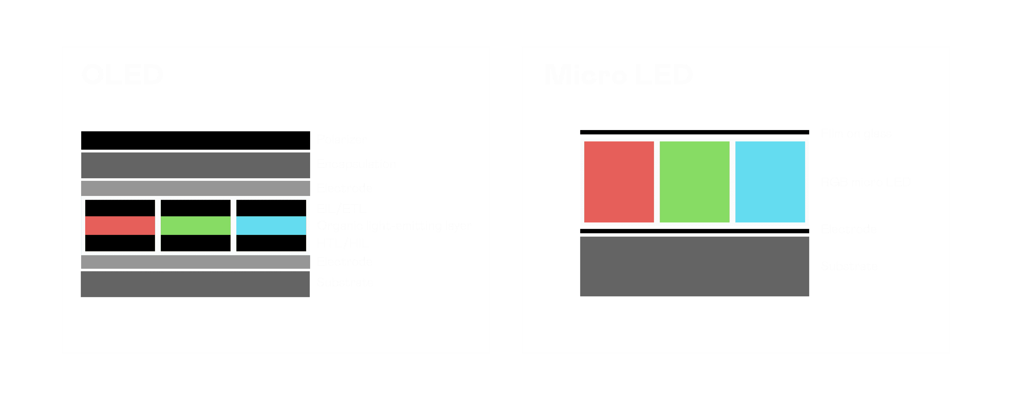 以 LED 做为显示画素,,可让 LED 的发光效率发挥到极致,,,,从而让显示器具备优异的亮度表现,,,不论是在户外或室内,,,均具备出众的显示效果。。。同时,,与使用有机材料的 OLED 相比,,,,LED 具备更稳定、、寿命更长的特性,,,不仅不会有画面烙印问题,,,,而且更不容易出现故障、、、坏点。。